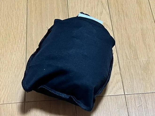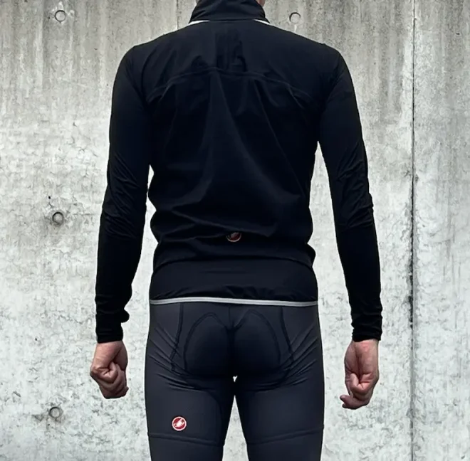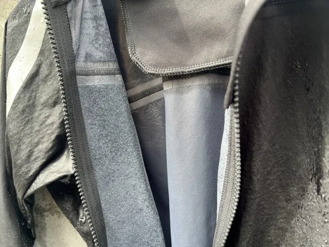 唯一の欠点は、前述の通り内側はフィルムが露出しているので長袖ベースレイヤーを着ていても肌への突っ張りがあり、着用感にややストレスがある点です。