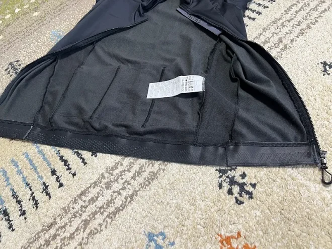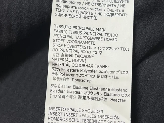ポリエステル92%、ポリウレタン8%という比率です。ポリウレタンは伸縮性を高めるために使われますが、8%はやや低めの比率で、着心地がしっかり目なのと一致します。残りはポリエステルですが、速乾性と型崩れのしづらさで用いられることが多く、このジャージの特徴通りです。