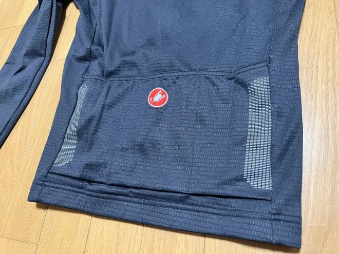 背面とバックポケットです。『ESPRESSO THERMAL JERSEY』にあったセキュリティポケットは廃されていますが、大きな反射素材を配置。個人的には、セキュリティポケットはあまり使用機会が無いので反射素材の方がありがたいですね。