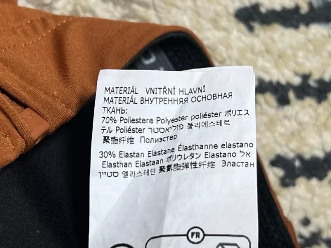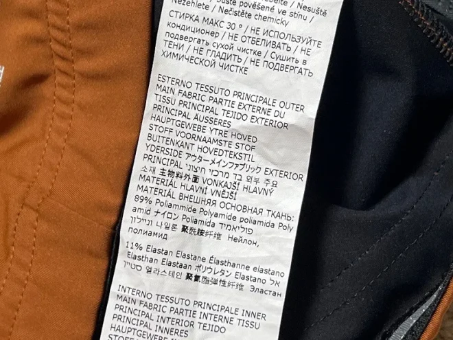 アウター生地は、ナイロンが約9割。残りはポリウレタンという構成です。ナイロンメインということは、耐摩耗性とある程度の伸縮性を狙っているのでしょうか。