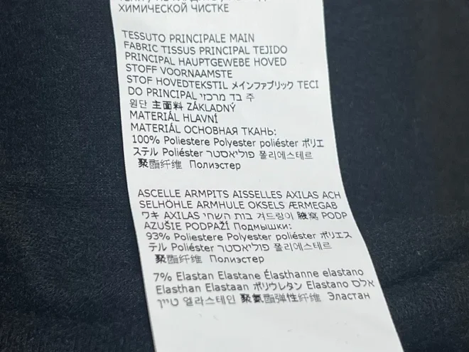 生地です。本体部分はポリエステル100%。『SottoZero』という生地で、フラットな表地と起毛した裏地から構成されています。