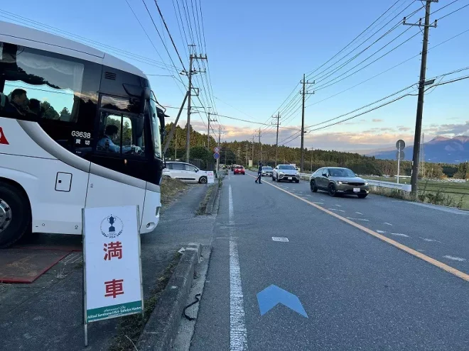 これは昨年の画像ですが、観光バスが6台も一気に出てくるので、5分くらい待機させられたのでした…。