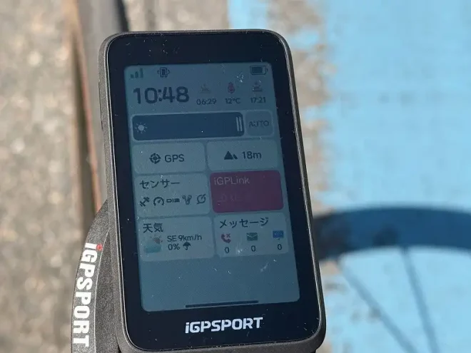 まず感じるのはコンパクトと薄さ。iGS800が発売されて以来、BiNaviも含めて大画面のサイコンばかり使ってきましたが、普段の練習やレースではこのサイズで十分。