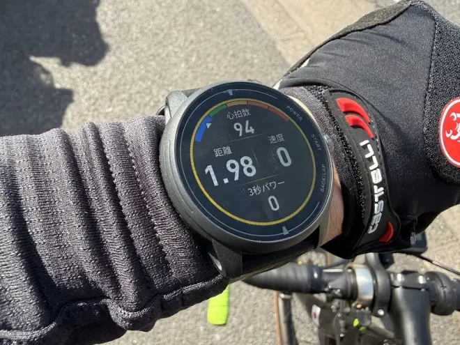 が、装着位置がズレると精度が落ちますから(心拍バンドも同様ですが)、アクティビティ中はややしっかり目に装着しておきましょう。