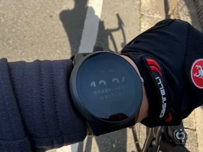 『私の使い方』というのは、平日や週末にクロスバイクで近所を数キロ移動する場合も都度アクティビティを記録するというもの。アクティビティの記録中は常にディスプレイが点灯しますし(※設定でOFFにすることが可能です)、GPSとの通信でバッテリーの消費は大きくなります。