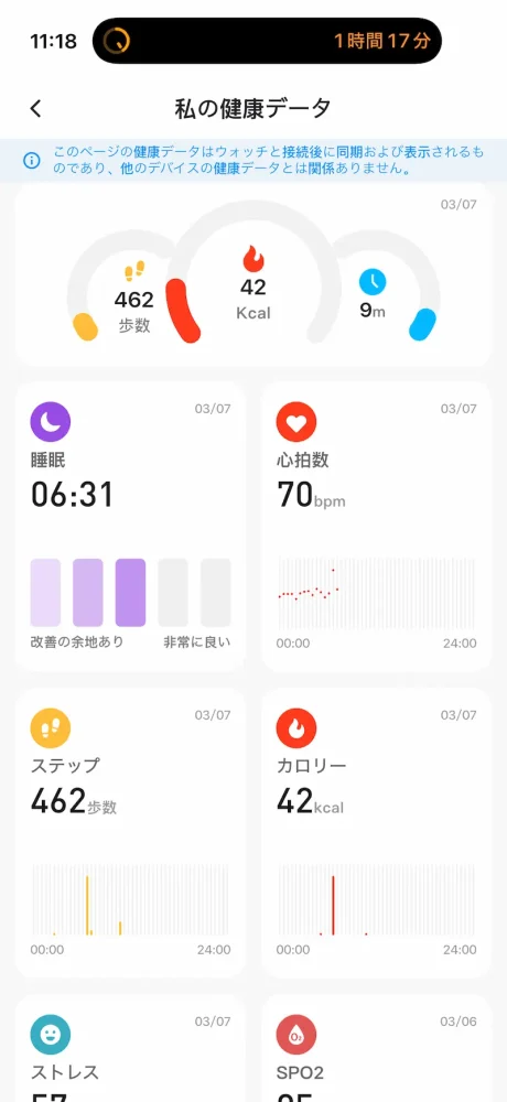24時間の心拍数、血中酸素、ストレス、HRV(心拍変動)のモニタリングに対応しています。