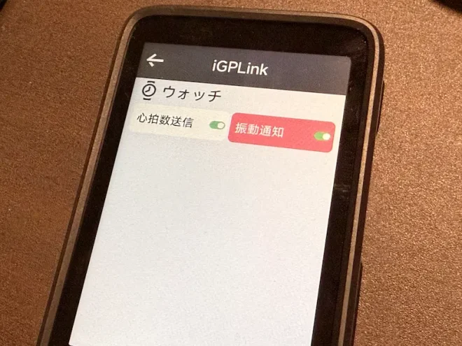 またiGPLinkのメニューには『振動通知』という項目がありますが、ONにするとサイコンでナビをしている時に右左折のアラートなどをVeRun側で受け取ることが可能です。メッチャ便利。