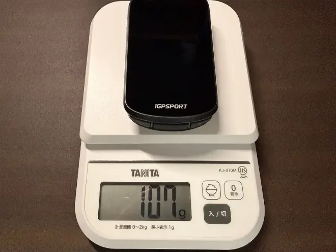 実測重量は公称107gに対して107gと誤差が無く優秀でした。3.5インチのBiNaviと比べて4gの重量増ですが、大容量バッテリーや本体スピーカーの搭載を考えれば納得できる数値です。
