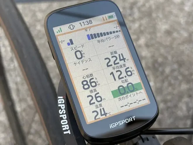 そして本製品ではiGPSPORT製品では初となる高性能スピーカーを搭載しており、音声ナビに対応しています。電子ベルも初搭載。画面も非常に美しく、画面上部にステータスバーも表示しているなど、全く不満の無い性能です。