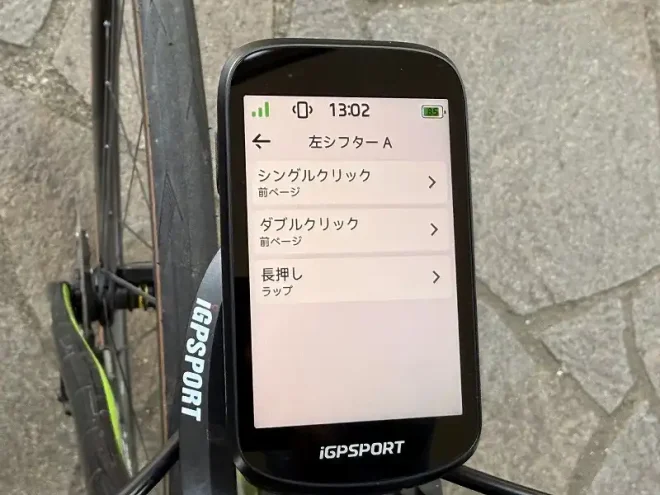 設定方法は、Di2をセンサーとして接続した後、センサー一覧からDi2を選択⇒ボタン設定⇒シフターを選択⇒割り当てる動作を選択⇒ベルを選択 となります。
